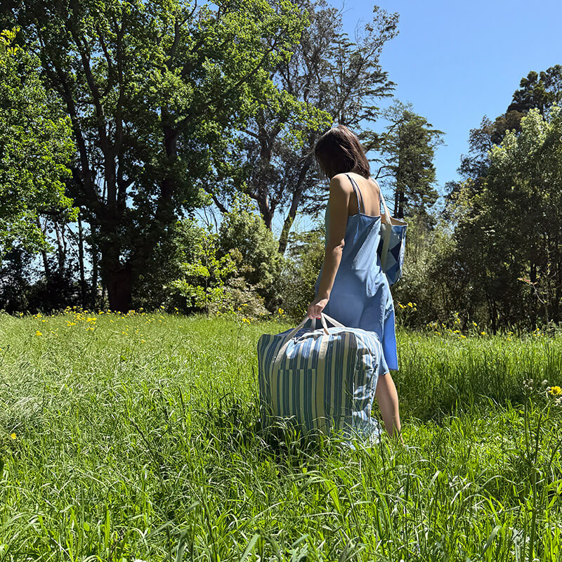 A Stuffer Bag in Golfclub Stripe can take towels to the beach in style.