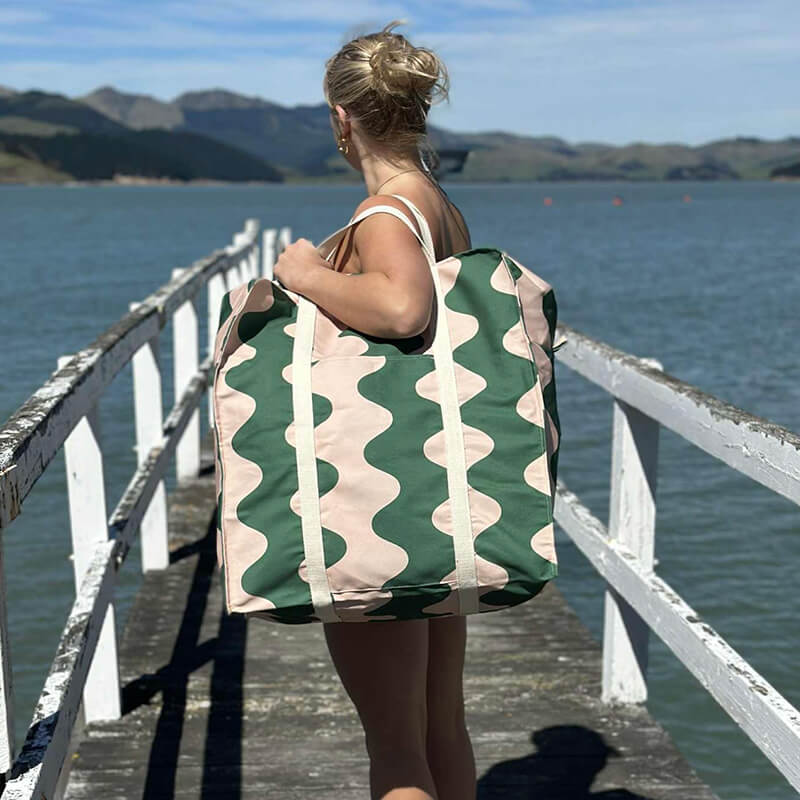 A Stuffer Bag in Watermelon Popsicle can take towels, rugs, picnic food & everything else, to the beach in style.