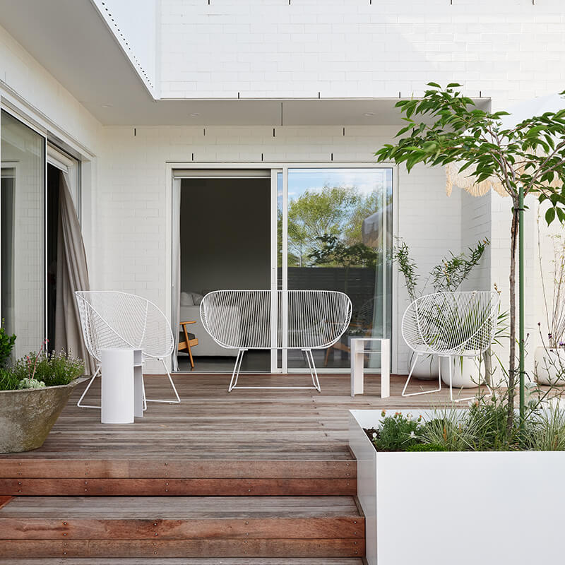 Complete your outdoor furniture setting : Coromandel Chairs, a Rotoiti coffee table & a Waipuna side table . (All in stainless steel & sold separately).