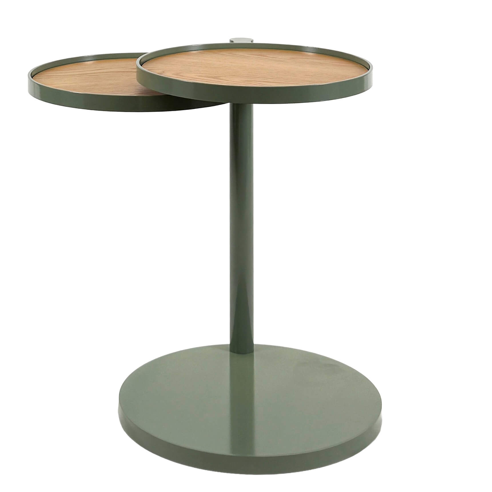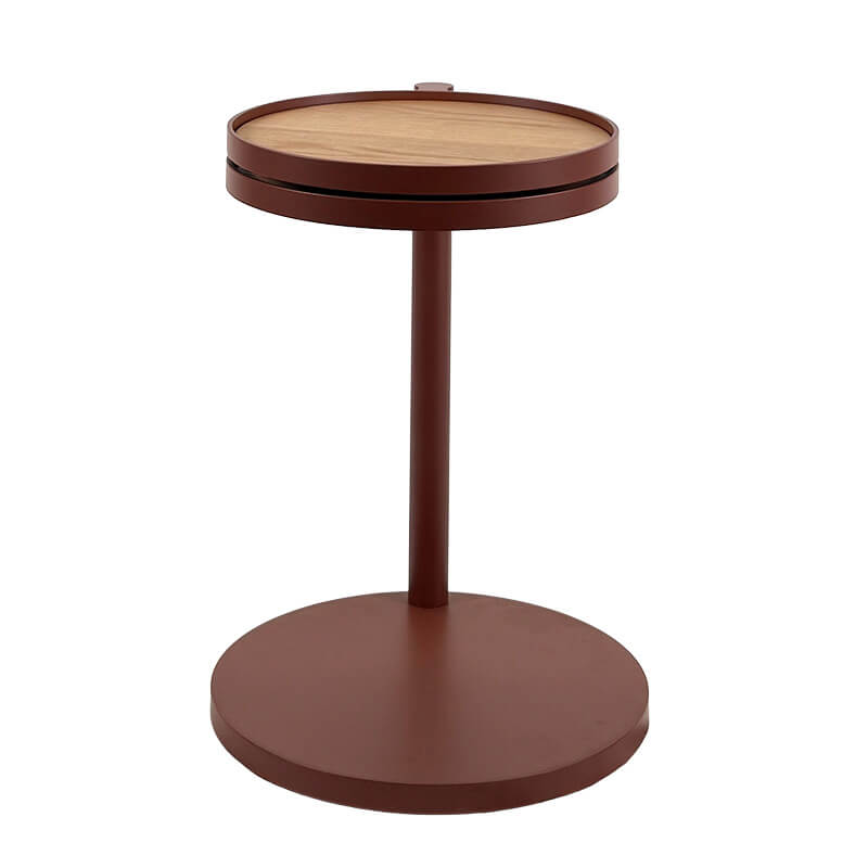 Made from aluminium and topped with two removable, natural oak veneer inserts.  Dotty effortlessly blends indoors with out. The oak simply pops out, making it easy to transition the table outdoors when needed.